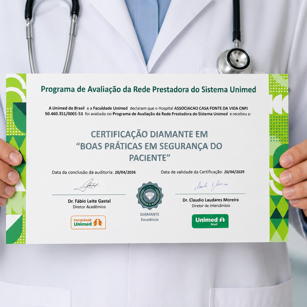 Receber o Selo Diamante Unimed representa o mais alto nível de reconhecimento em excelência assistencial, segurança do paciente e qualidade nos serviços de saúde.